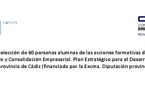 PROCESO PARA LA ADJUDICACIÓN POR PARTE DE LA CONFEDERACIÓN DE EMPRESARIOS DE LA PROVINCIA DE CÁDIZ DE AYUDAS ECONÓMICAS A PERSONAS DESEMPLEADAS, IDENTIFICADAS Y SELECCIONADAS, PARTICIPANTES EN EL PROYECTO “FORMACIÓN A LA CARTA 2023”, CONFORME AL PROYECTO “ASISTENCIA A LA FORMACIÓN A LA CARTA”, FINANCIADO POR LA DIPUTACIÓN PROVINCIAL DE CÁDIZ.