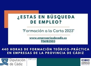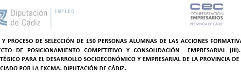 PROCESO PARA LA ADJUDICACIÓN POR PARTE DE LA CONFEDERACIÓN DE EMPRESARIOS DE LA PROVINCIA DE CÁDIZ DE AYUDAS ECONÓMICAS A PERSONAS DESEMPLEADAS, IDENTIFICADAS Y SELECCIONADAS, PARTICIPANTES EN EL PROYECTO “FORMACIÓN A LA CARTA 2023”, CONFORME AL PROYECTO “ASISTENCIA A LA FORMACIÓN A LA CARTA”, FINANCIADO POR LA DIPUTACIÓN PROVINCIAL DE CÁDIZ.
