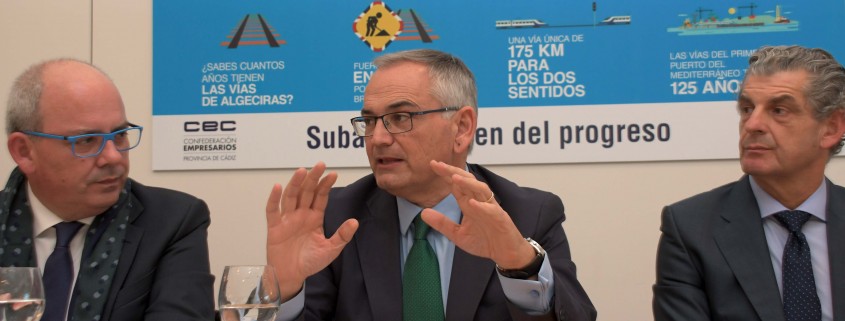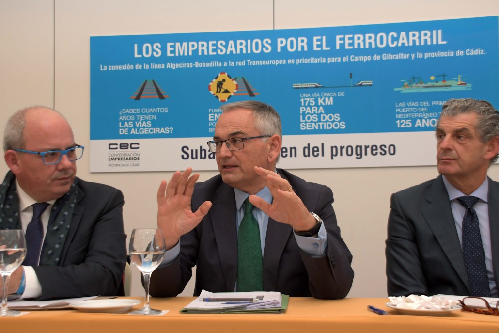 La Confederación de Empresarios de la provincia de Cádiz (CEC) ha celebrado esta tarde en Los Barrios un encuentro con el comisionado del Gobierno de España para el Corredor Mediterráneo, Josep Vicent Boira i Maiques, en su primera visita al Campo de Gibraltar desde su nombramiento, el pasado mes de julio, por parte del ministro de Fomento, José Luis Ábalos.