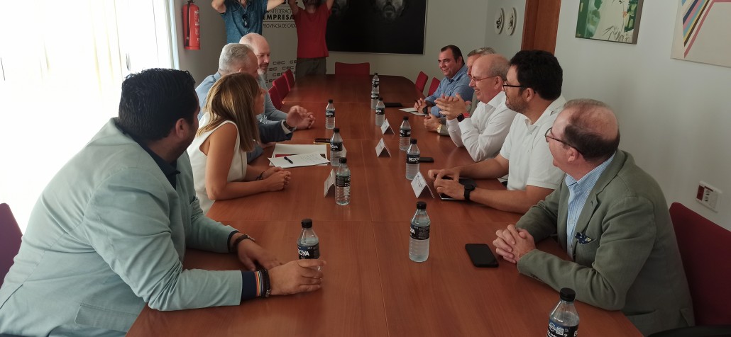 La sede en Cádiz de la Confederación de Empresas de la provincia de Cádiz ha acogido un encuentro con representantes de la candidatura del PSOE de Cádiz a las elecciones generales del 23 de julio. La delegación socialista, que ha sido recibida por el presidente de la CEC, Javier Sánchez Rojas y miembros del comité ejecutivo, ha estado encabezada por el secretario general del PSOE de Cádiz, Juan Carlos Ruiz Boix, junto a los candidatos José Ramón Ortega y Jaime Armario, además de la secretaria de Organización Ana Carrera.