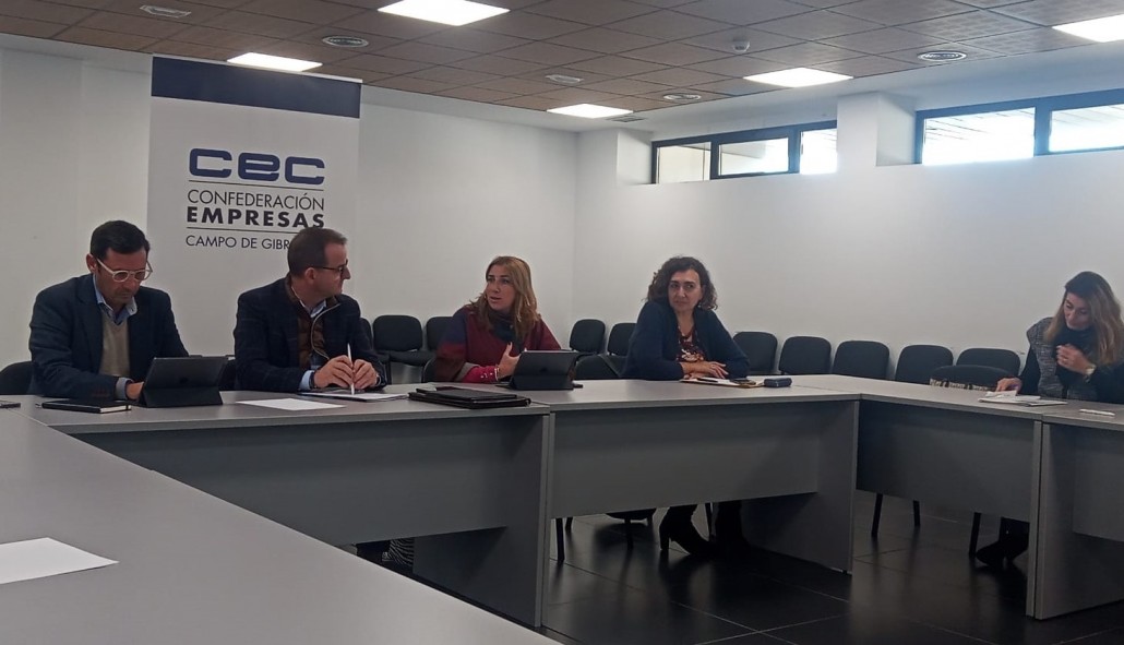 Algeciras, 30 de noviembre de 2022.- El Consejo Territorial de la CEC en el Campo de Gibraltar ha mantenido un encuentro de trabajo con la delegada Territorial de Economía, Hacienda, Fondos Europeos y de Política Industrial y Energía en Cádiz, Inmaculada Olivero Corral; y el subdelegado de la Junta de Andalucía en la Comarca, Javier Rodríguez Ros. Presidido por Francisco Arroyal, vicepresidente de la CEC, acompañado de la secretaria general, Carmen Romero, en este órgano participan representantes territoriales y sectoriales de las empresas y