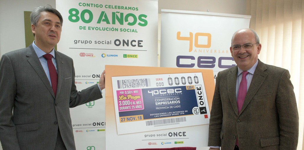 La ONCE se suma a la celebración del 40 aniversario de la Confederación de Empresarios de Cádiz (CEC) dedicando su sorteo del próximo martes, 27 de noviembre, a esta conmemoración.