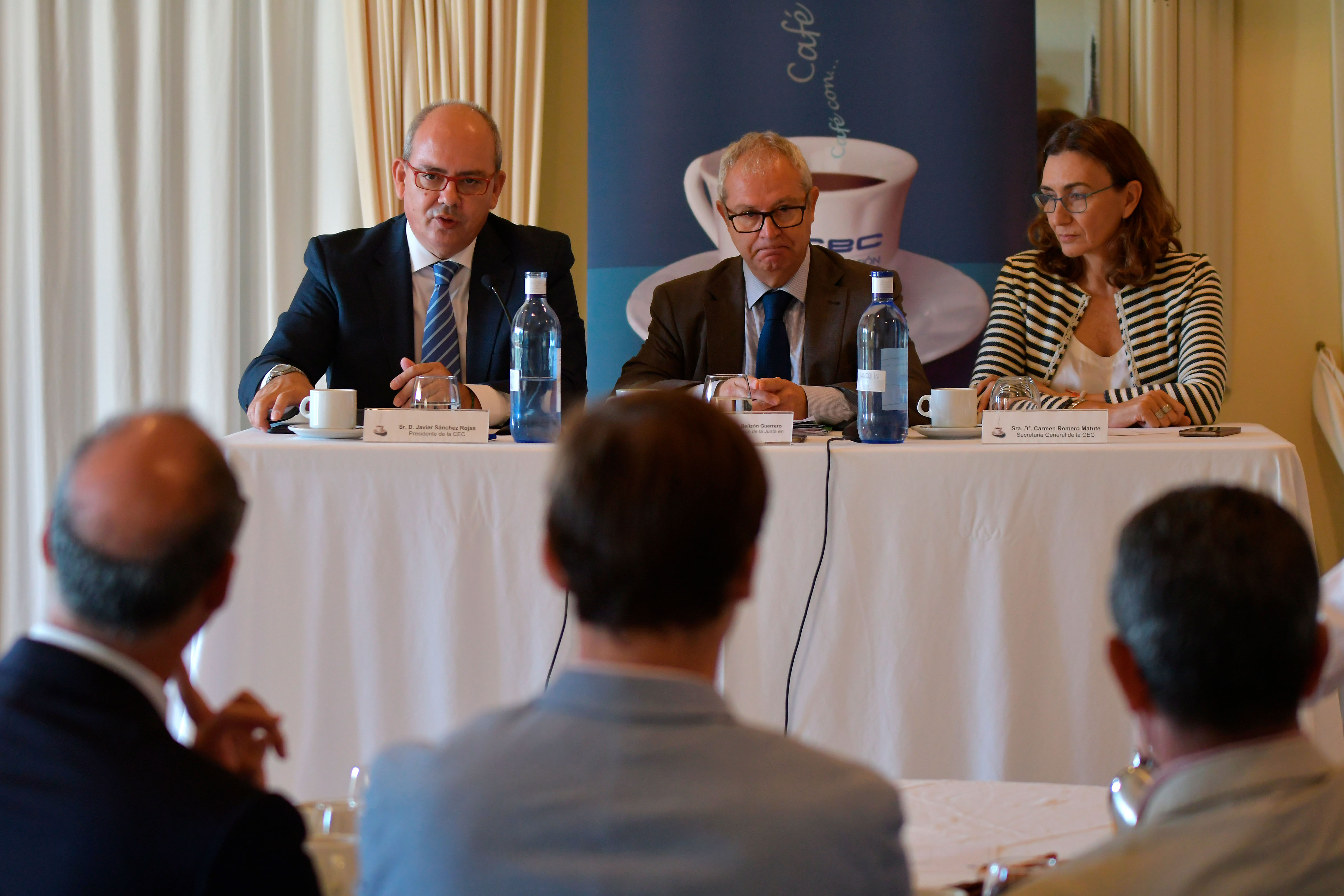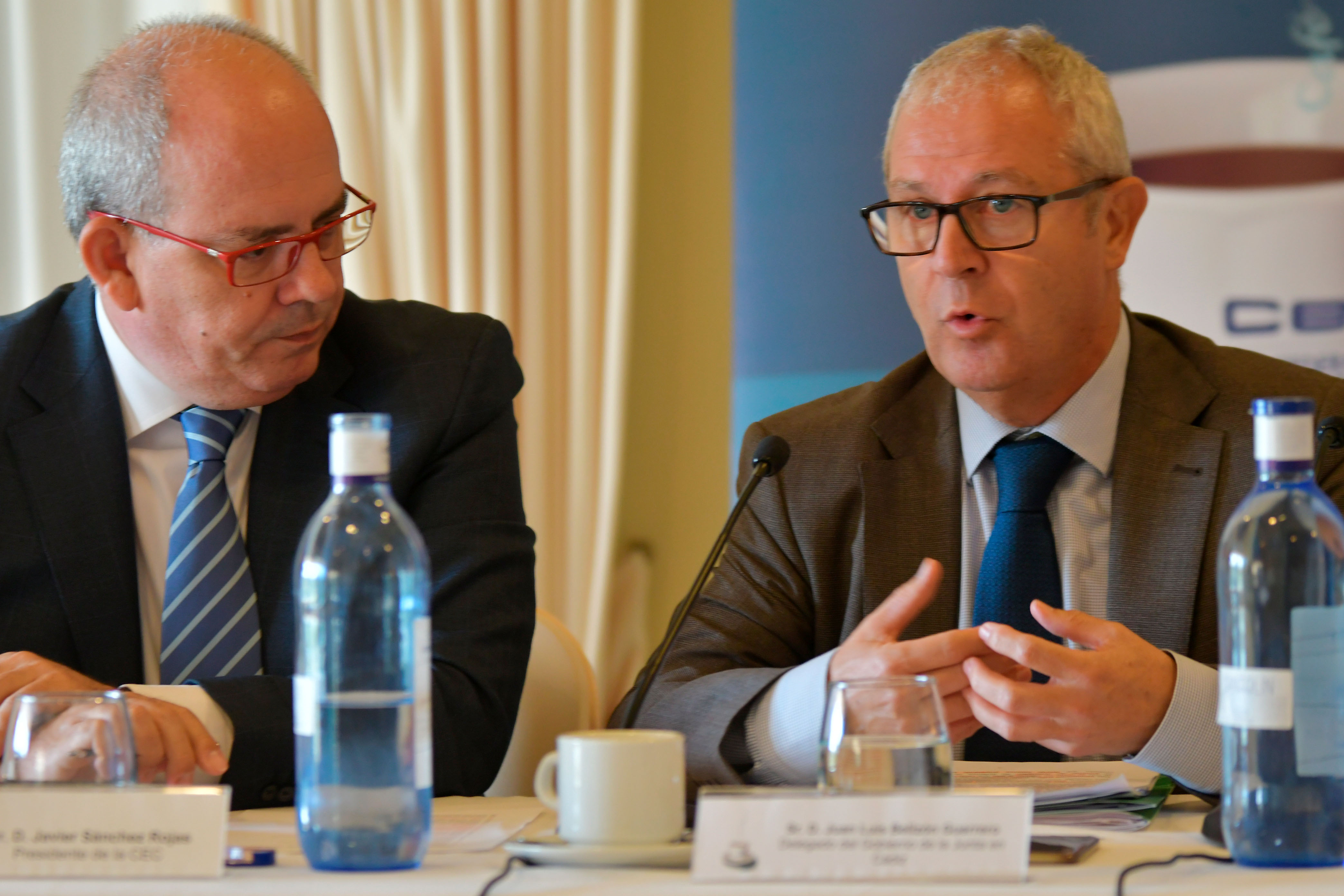 El delegado de la Junta de Andalucía en la provincia de Cádiz, Juan Luis Belizón, ha explicado hoy a los empresarios del Campo de Gibraltar el detalle de los Presupuestos de la comunidad autónoma para el próximo 2018. Ha sido en el transcurso del “Café con…” que hemos organizado esta mañana en el hotel Guadacorte Park, en Los Barrios. Nuestro invitado ha sido presentado por el presidente de CEC, Javier Sánchez Rojas, destacando su perfil de gestor político, curtido en el ámbito municipal y en el sector educativo.