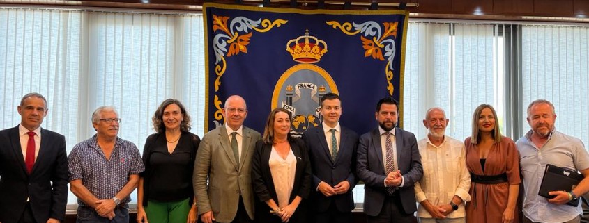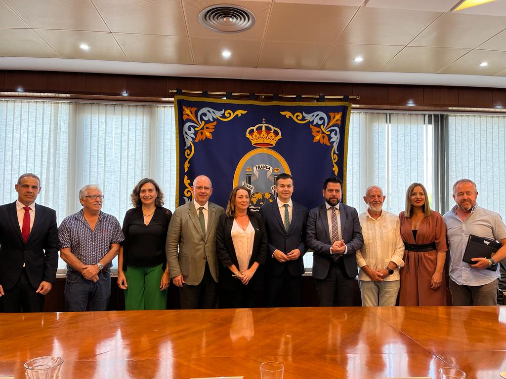 Tras firmar en el Libro de Honor de la Zona Franca, ha comenzado la reunión con los representantes económicos y sociales de la provincia, a la que han asistido el presidente de la Confederación de Empresas de la Provincia de Cádiz (CEC), Javier Sánchez Rojas, acompañado de la secretaria general, Carmen Romero; la secretaria general de CCOO en Cádiz, Inmaculada Ortega, y Juan Linares, secretario provincial de industria de CCOO Cádiz; y Antonio Pavón y Antonio Montoro, secretario general de UGT Cádiz y secretario provincial de Industria de UGT Cádiz, respectivamente, además del anfitrión, el delegado de la Zona Franca y la diputada de Empleo y vicepresidenta del IEDT, Ana Carrera.