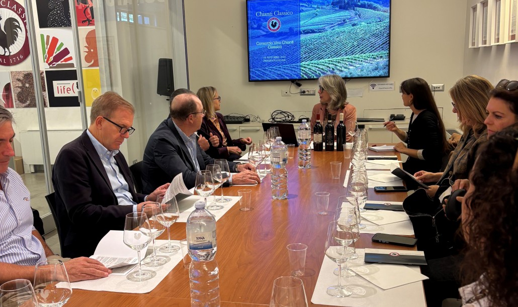 El punto central de la visita fue la reunión con el Consorzio Chianti Classico, celebrada en su sede de Sambuca (Florencia), donde los participantes fueron recibidos por Carlotta Gori, directora del consorcio. Durante el encuentro se abordaron temas como la trazabilidad del producto, los sistemas de control de calidad y las estrategias de promoción de una de las denominaciones más reconocidas del mundo.