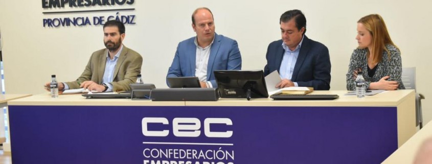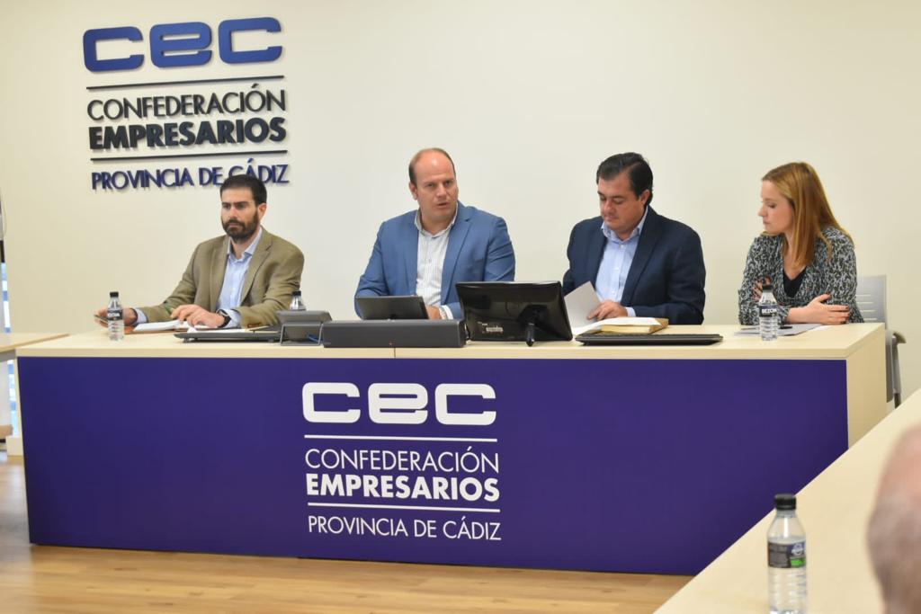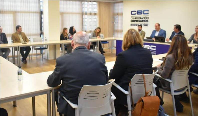 La sede de la Confederación de Empresas de la provincia de Cádiz (CEC) ha acogido un encuentro de trabajo de delegado territorial de Sostenibilidad, Medio Ambiente y Economía Azul, Oscar Curtido, con el presidente de CEC Medio Ambiente, Gonzalo Ganaza, miembros de esta asociación de empresas medioambientales y la Comisión de Desarrollo Sostenible y Transición Ecológica de la organización empresarial.