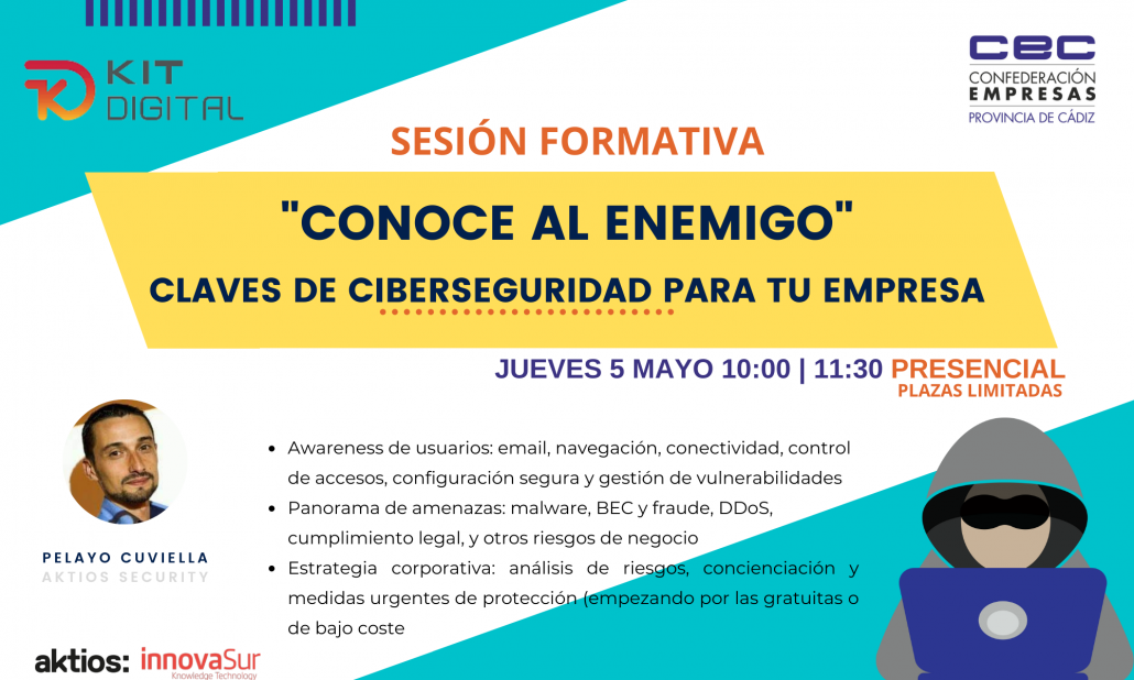 SESIÓN FORMATIVA PRESENCIAL "CONOCE A TU ENEMIGO" : CLAVES DE CIBERSEGURIDAD PARA TU EMPRESA