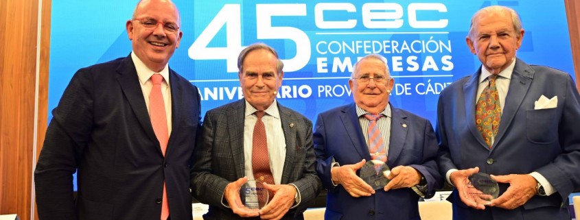 La Confederación de Empresas de la provincia de Cádiz (CEC) ha celebrado hoy su 45 Aniversario reuniendo en una emotiva ceremonia a representantes del ámbito asociativo empresarial de distintas etapas y sectores productivos.