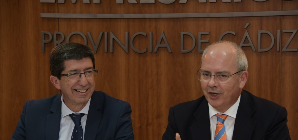 Esta tarde, el vicepresidente de la Junta de Andalucía y consejero de Turismo, Regeneración, Justicia y Administración Local, Juan Marín, ha mantenido una reunión en la sede de la CEC para informar del decreto ley de Fomento de Iniciativas Económicas.