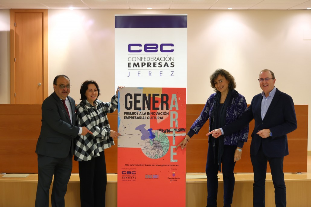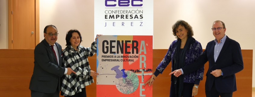La sede de la Confederación de Empresas de la provincia de Cádiz (CEC) en Jerez ha acogido esta mañana la presentación oficial de los Premios GenerArte a la Innovación Empresarial Cultural, una nueva convocatoria que nace con el objetivo de fomentar el emprendimiento, la creatividad y la innovación en las industrias culturales y creativas de Jerez de la Frontera.