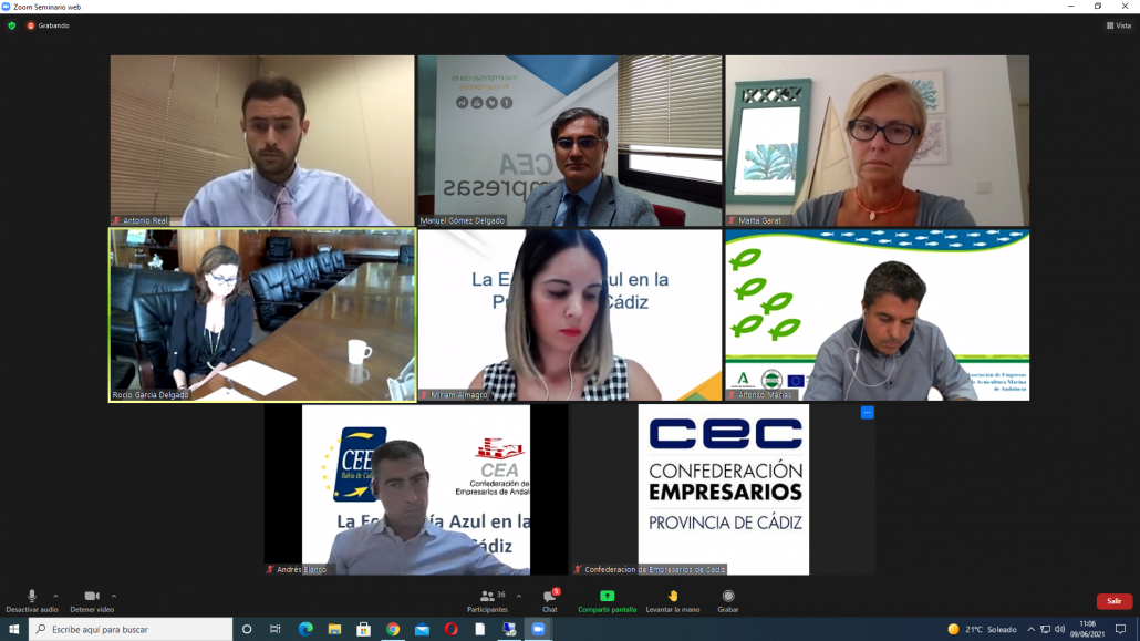 La directora de Promoción Empresarial y Comercio Exterior de la Zona Franca de Cádiz, Rocío García-Delgado, y el director del Departamento de Servicios a Empresas de la Confederación de Empresarios de Cádiz (CEC) Manuel Gómez, han sido los encargados de la apertura de la jornada virtual sobre economía azul organizada por la Confederación de Empresarios de Andalucía (CEA) que se ha celebrado esta mañana y que tenía como objetivo primordial exponer la situación actual de la Economía Azul en la provincia de Cádiz, además de describir las debilidades, amenazas, fortalezas y oportunidades de los sectores ligados a la economía azul.
