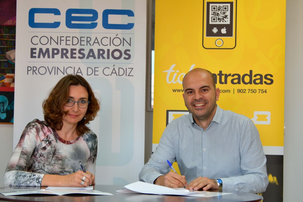 La Confederación de Empresarios de la provincia de Cádiz y la empresa gaditana Tickentradas.com han firmado un convenio de colaboración por el que esta plataforma se encargará de poner a la venta las entradas de la Noche de la Empresa 2017, que se celebrará el próximo día 30 de junio en la Real Plaza de Toros de El Puerto de Santa María.