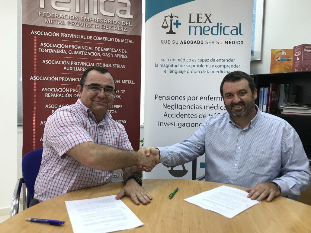 La empresa Lex Medical participará como entidad colaboradora en el 40 Aniversario de FEMCA, la Federación de Empresas del Metal de la Provincia de Cádiz. El acuerdo quedó rubricado en un acto en el que tomaron parte el director gerente de Lex Medical, el doctor Jesús Sánchez Armario, y el secretario general de FEMCA, José Muñoz Flores.