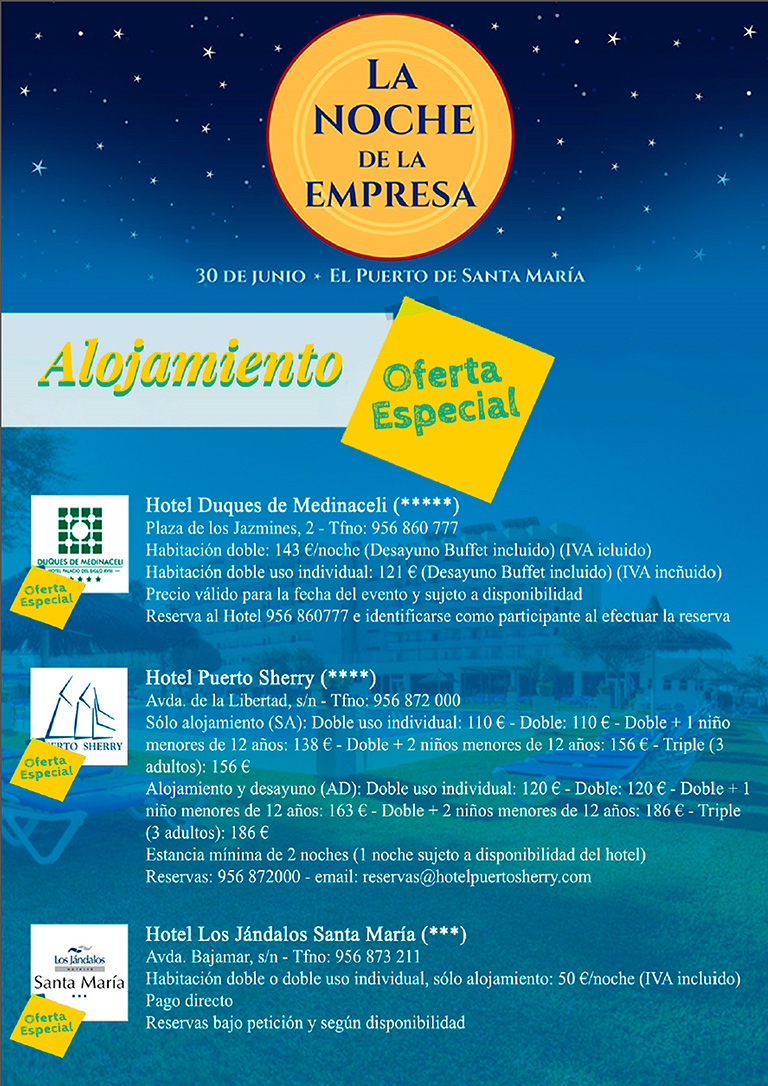 La NOCHE DE LA EMPRESA 2017 es una cita obligada para los empresarios de la provincia de Cádiz y se configura como una reunión multitudinaria, un gran acontecimiento social que supondrá el inicio de la temporada estival. Empresarios, directivos y ejecutivos que conforman el tejido económico gaditano podrán entrar en contacto directo con personalidades del mundo político, institucional y social de la provincia. Se espera la asistencia de 1.000 personas.
